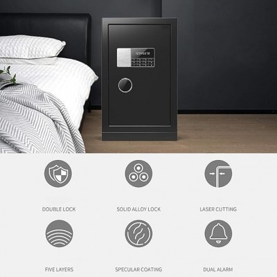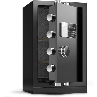 • Mạnh mẽ và an toàn: két sắt gia đình được làm bằng kết cấu tường thép gia cố chắc chắn. Nó có bu lông khóa đồ nội thất, cửa thép chống giả mạo và chống giả mạo, cardini chịu lực cao nên có khả năng chống giả mạo và đảm bảo rằng không ai có thể mở cửa nếu không có mật khẩu hoặc mật mã được ủy quyền.
