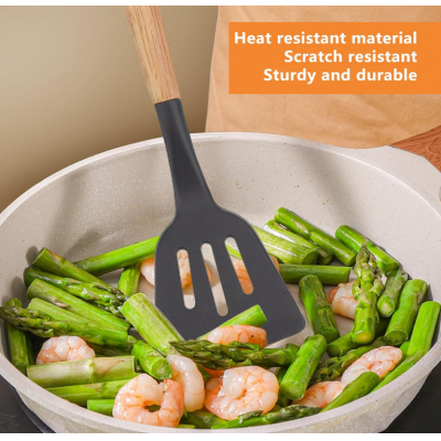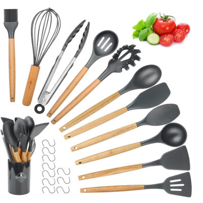 Bộ dụng cụ nhà bếp Hicoosee 22 miếng Muôi silicon không chứa BPA có tay cầm bằng gỗ