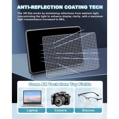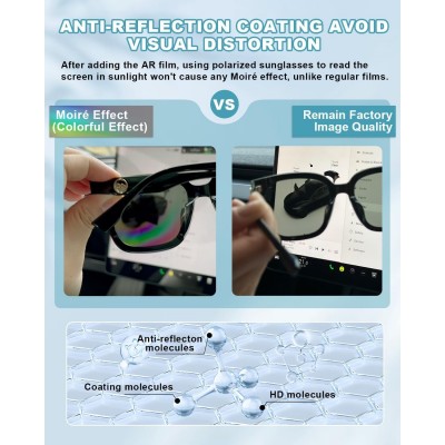 【Trasmissione della Luce del 98%】La nostra pellicola protettiva per lo schermo Highland utilizza una tecnologia di rivestimento anti-riflesso (AR) a due strati che offre una trasmissione della luce fino al 98%, garantendo un'eccellente visibilità in varie condizioni di illuminazione. Assicura inoltre che lo schermo non rifletta toni arcobaleno come un pannello di vetro trasparente quando si indossano occhiali da sole polarizzati (elimina l'effetto moiré) e fornisce al conducente una visualizzazione chiara e realistica.