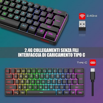 página de título > Bàn phím cơ chơi game có dây Redthunder 60%, Đèn nền động RGB, Chuột Nest