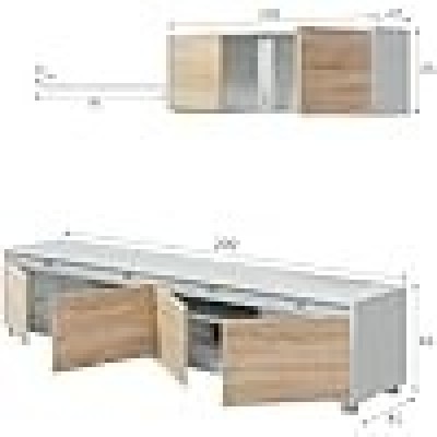 Kích thước CM - Cửa TV: Dài: 200 Chiều rộng: 41 Cao: 43 - Kệ treo tường: 105x29h35 - Kệ: 95x21h3
