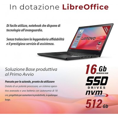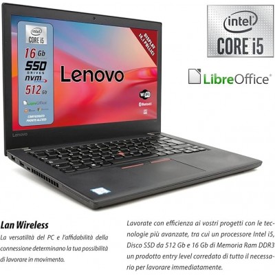 • Il Notebook Lenovo monta un processore Intel i5. Il Pc Portatile ha ram ddr4 da 16Gb, SSD da 512Gb, windows 11 pro, Pacchetto Libre Computer Pronto All'uso.