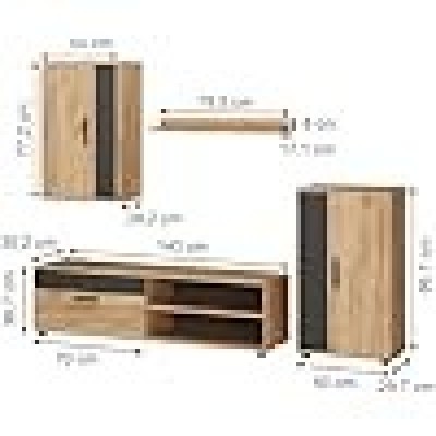 página de título > Đồ gia dụng và nhà bếp > Vicco Powered Wall Berno, Golden Oak/Anthracite, Bộ 4