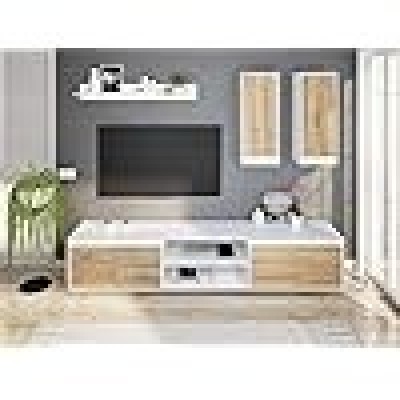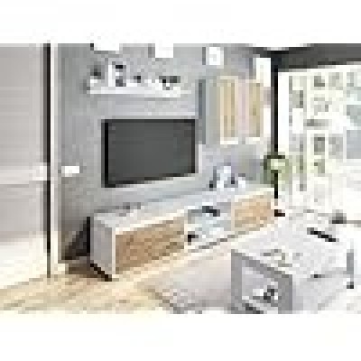 STRUTTURA E UTILIZZO - Mobile TV per salotto composto da una base porta televisione a quattro ante battenti e due ripiani a vista centrali, due moduli sospesi e una mensola - La scelta dei vari mobili che compongono questa composizione da salotto rende il design di questo articolo d'arredamento moderno, funzionale e salvaspazio - Oltre al posizionamento della TV potrete personalizzare il ripiano e la mensola con i vostri soprammobili preferiti che rimarranno in esposizione sugli scaffali - Lo spazio all'interno delle ante è perfetto per riporre i vostri libri, documenti, oggetti decorativi o stoviglie in modo ordinato e discreto
