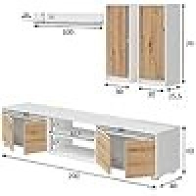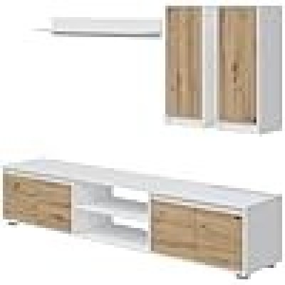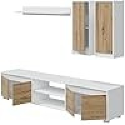 Trang bị tường - phòng khách, phòng khách đa năng, bố cục cho phòng khách hiện đại, 200x40h14 cm, màu trắng và gỗ sồi