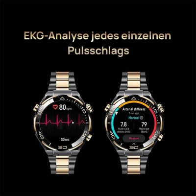 Điều tuyệt vời nhất: Huawei Watch Ultimate Design toát lên sự sang trọng trong từng chi tiết. Sáu nguyên tố vàng vi lượng được tìm thấy ở rìa của khung bezel gốm tinh thể nano. Các chi tiết vàng và đen của vòng tay bổ sung cho nhau và làm cho mạch đập của bạn tỏa sáng.