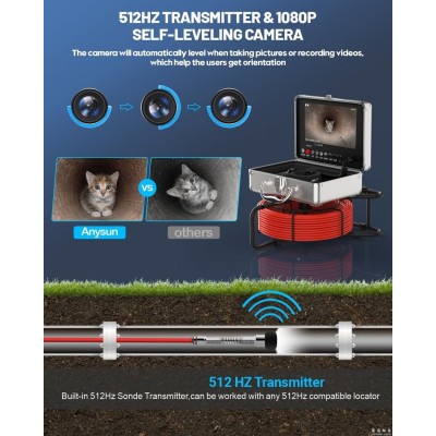 Anysun VideoSpection cho Đường ống, Máy nội soi tự kiểm tra với bộ phát 512 Hz, Camera