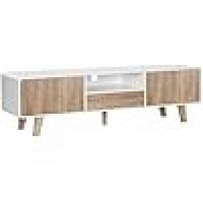 Foluban - Chân đế tivi cao tới 165 cm, bằng gỗ và kim loại mộc mạc, có kệ, TV Indus