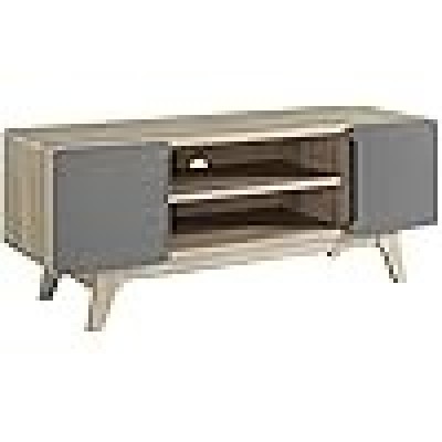 Foluban - Chân đế tivi cao tới 165 cm, bằng gỗ và kim loại mộc mạc, có kệ, TV Indus