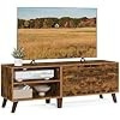 Foluban - Chân đế tivi cao tới 165 cm, bằng gỗ và kim loại mộc mạc, có kệ, TV Indus