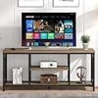 MODERNO INDUSTRIALE TV SUPPORTO: Il classico colore rovere con silhouette pulita e dettagli ben progettati fanno una combinazione perfetta in questo mobile TV contemporaneo. Crea un'atmosfera attraente e moderna e migliora la decorazione della tua casa con stile.