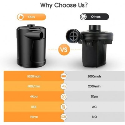 【Alimentazione a lunga durata e ricarica USB】- La pompa dell'aria elettrica a batteria ha una batteria al litio ricaricabile integrata da 5200mAh, che fornisce un tempo di lavoro più lungo. Il cavo di ricarica USB incluso può essere utilizzato con qualsiasi dispositivo dotato di interfaccia USB, come un sedile per auto, un computer o una power bank, rendendolo più comodo per i tuoi viaggi estivi.