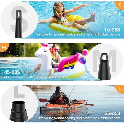 【3 diverse bocchette】- La pompa dell'aria elettrica è dotata di tre diverse tipologie di bocchette per soddisfare le tue varie esigenze di gonfiaggio. È perfetta per materassi ad aria, piscine gonfiabili, anelli da nuoto, piscine gonfiabili per bambini, palle da yoga e altri oggetti gonfiabili. Può anche essere utilizzata per rimuovere l'aria in eccesso dai sacchi per la conservazione sottovuoto.