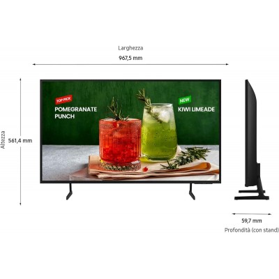 • Contenuto: 1x Samsung Display professionale Serie BEC-H da 43", Dimensioni (LxAxP): 96,39 x 55,89 x 5,96 cm, Peso: 8,1 kg, Colore: Nero