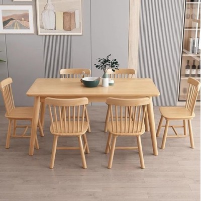 Set tavolo da pranzo da 6 pezzi robusto e durevole - Realizzato in legno massello di gomma di alta qualità, il piano del tavolo è resistente e liscio per una facile pulizia; le gambe del tavolo in legno sono solide per garantire una costruzione stabile. Le gambe della sedia sono realizzate in legno di gomma con forte resistenza alla flessione e il sedile in legno di gomma è resistente all'usura, costruito per un uso prolungato.