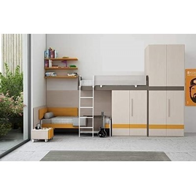 Dafne Italian thiết kế Tuttocampo.it - Phòng ngủ trẻ em hoàn chỉnh (1 giường giữa gác lửng; 1 gi